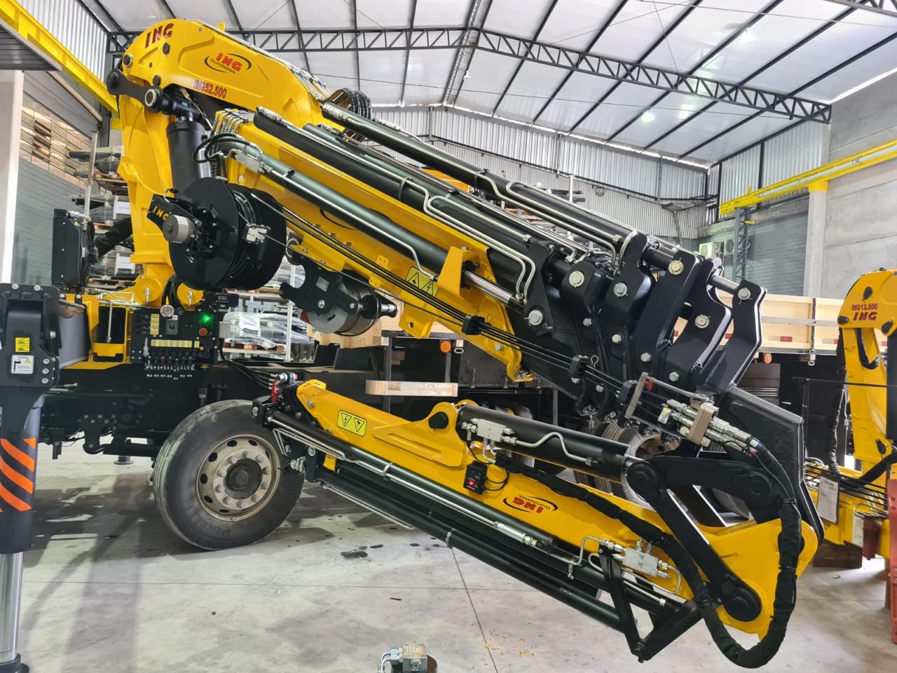 Guindastes robustos com capacidades de 4500 até 120.500Kgm, com terceiro braço articulado (Flyjib) disponível na gama de maior capacidade.